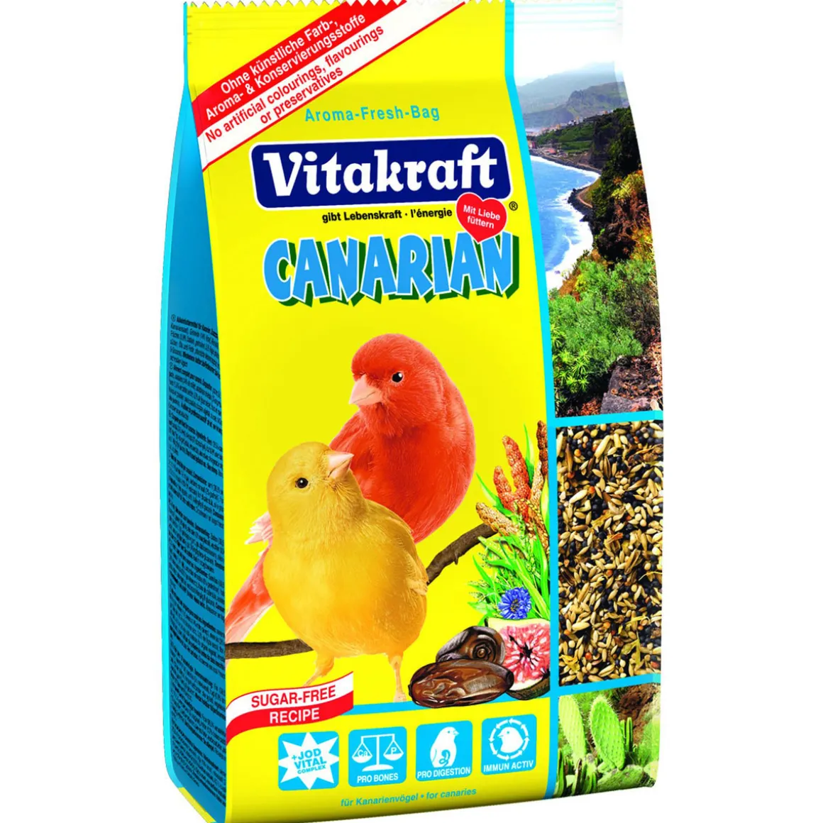 Mit unserem Heimatfutter bieten Sie Ihren Kanarienvögeln ein ganz besonderes Highlight. Denn das Futter ist mit Ringelblumenblüten und leckeren Datteln und Feigen verfeinertZutaten wie von den Kanarischen Inseln, der ursprünglichen Heimat der Tiere! Die reichhaltige Mischung wurde von Tierärzten und Vogelexperten wissenschaftlich entwickelt und enthält selbstverständlich alle wichtigen Nähr- und Aufbaustoffe wie Vitamine, Mineralien und Spurenelemente. Für Heimatgefühle mit Zusatznutzen für Ihre Tiere!