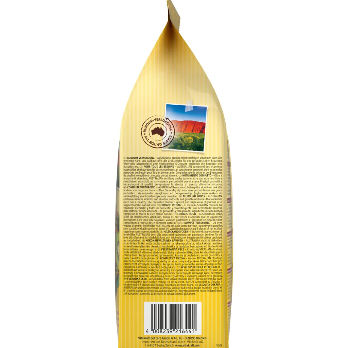 Neben wichtigen Vitaminen enthält Australian auch alle weiteren Nähr- und Aufbaustoffe, die Großsittiche für ein gesundes Leben brauchen. Wertvolle Magenkiesel und hochwertige Beta-Glucane ergänzen die Rezeptur des Naturfutters. Heimatfutter, natürlich gut!
