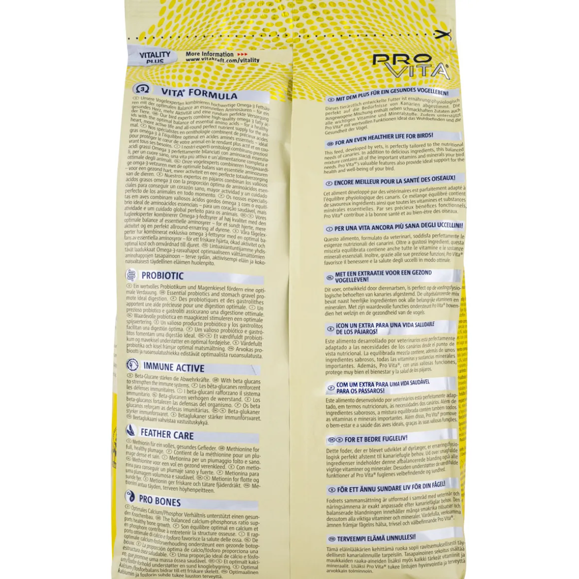 Pro Vita® ist ein ausgewogenes, tierärztlich entwickeltes Hauptfutter für Kanarienvögel – mit dem Plus für ein gesundes Vogelleben! Denn die funktionale Mischung enthält neben vielen schmackhaften Zutaten die einzigartige VITA® FORMULA, eine von unseren Vogelexperten speziell entwickelte Kombination aus hochwertigen Omega-3-Fettsäuren und einer optimalen Balance an essenziellen Aminosäuren. Damit sorgt Pro Vita® für eine rundum perfekte Versorgung der Tiere – für ein gesundes Herz, mehr Aktivität und ein verbessertes Wohlbefinden.