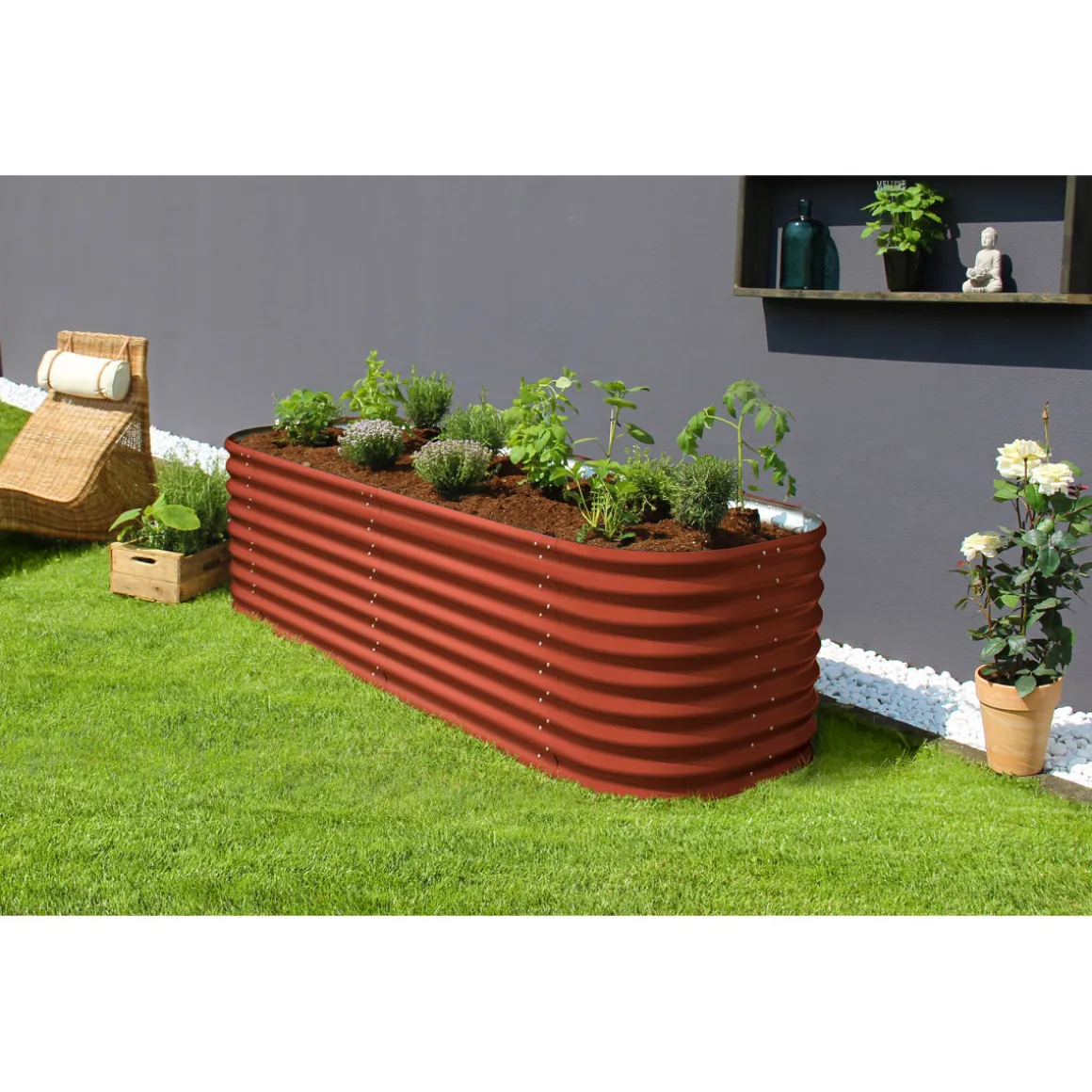 Mit der Vitavia Erweiterung stretched 630 rubin erweitern Sie Ihr Hochbeet und schaffen mehr Platz für Ihre Pflanzen. Das ovale Design in der Farbe Rubin verleiht Ihrem Garten eine moderne Note.