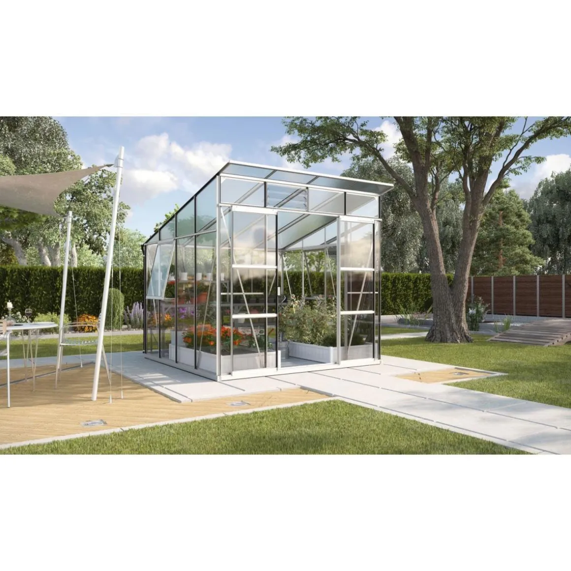 Das Vitavia Gewächshaus Freya 7600 ist die ideale Wahl für alle Hobbygärtner, die ihren Pflanzen einen optimalen Schutz vor Witterungseinflüssen bieten möchten. Mit einer Grundfläche von 7,6 m² bietet das freistehende Gewächshaus ausreichend Platz für eine Vielzahl von Pflanzen. Das moderne Design mit silberfarbenem Aluminiumgestell fügt sich harmonisch in jeden Garten ein.