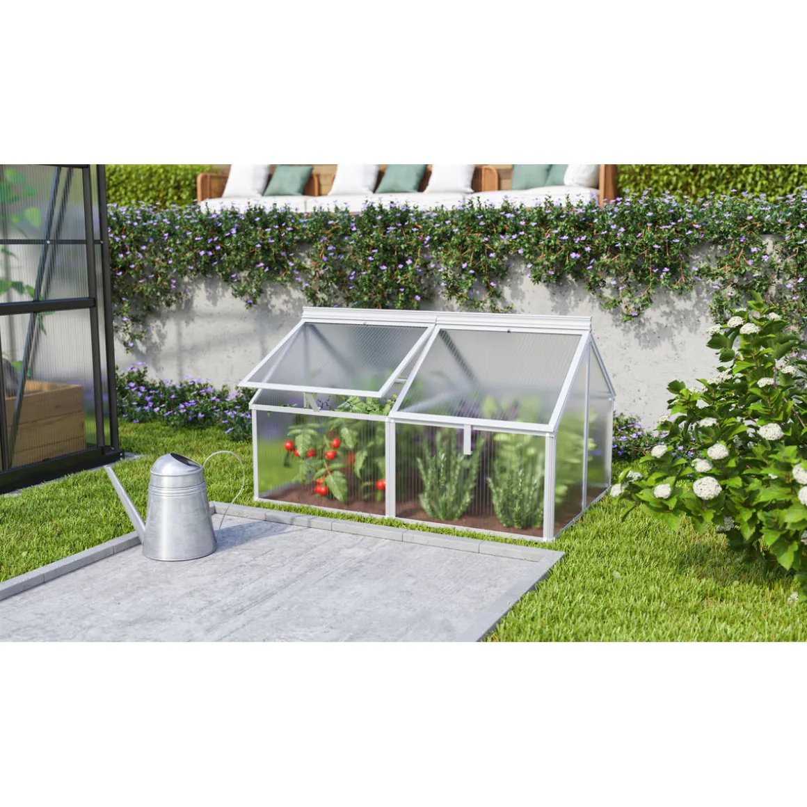 Das Vitavia Gewächshaus Gaia Jumbo richtet sich an alle, die ihre Leidenschaft fürs Gärtnern auf das nächste Level heben möchten. Egal ob Sie Anfänger sind oder bereits über einen grünen Daumen verfügen – dieses Frühbeet unterstützt Sie bei der erfolgreichen Anzucht Ihrer Lieblingspflanzen. Dank seiner kompakten Größe eignet es sich perfekt für kleinere Gärten, Terrassen oder Balkone. Die robusten Materialien sorgen dafür, dass Ihre Pflanzen selbst bei widrigen Wetterbedingungen geschützt bleiben. Und durch die einfache Handhabung können auch unerfahrene Gärtner sofort loslegen! Lassen Sie Ihren Traum vom eigenen Gemüse- oder Kräutergarten wahr werden!