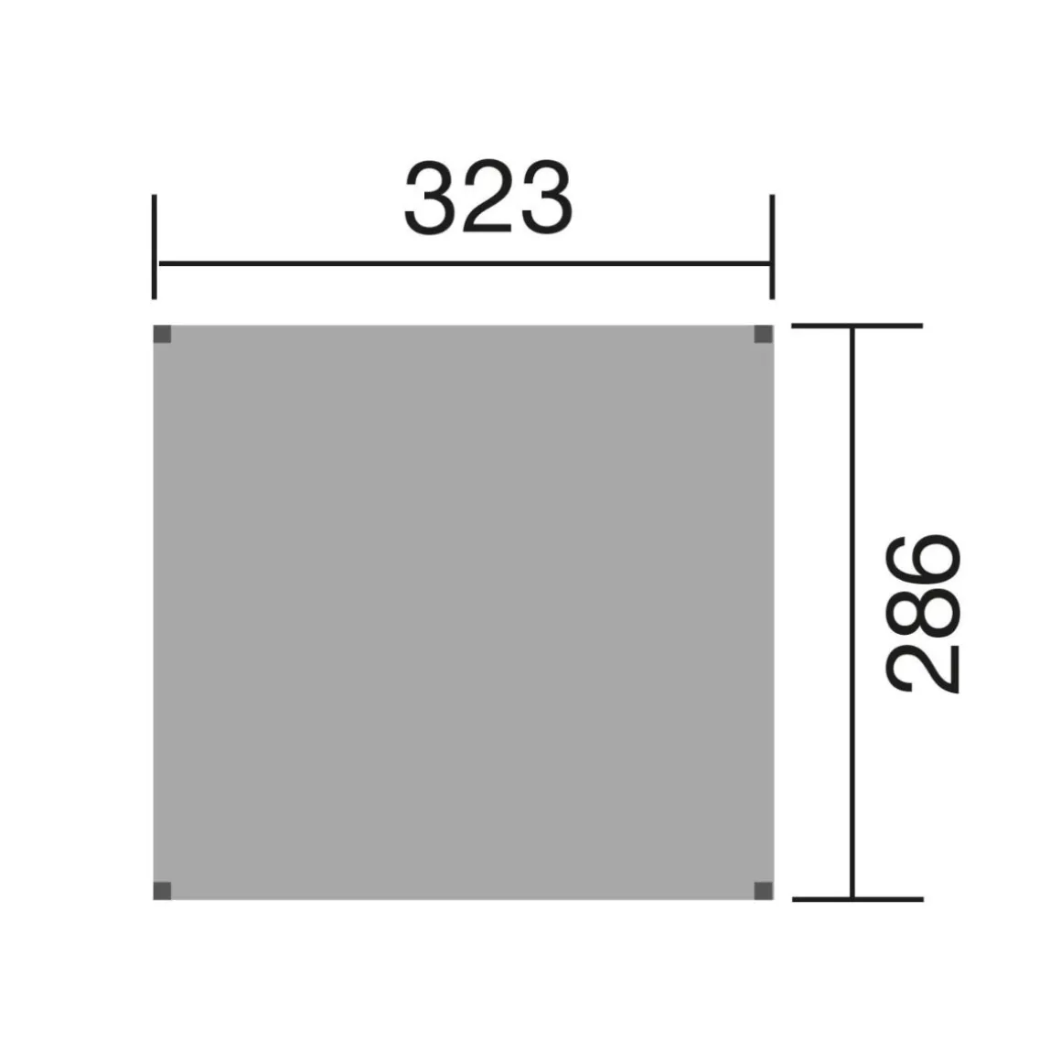 - Sockelmaß: 3,4 x 2,9 m (BxL)