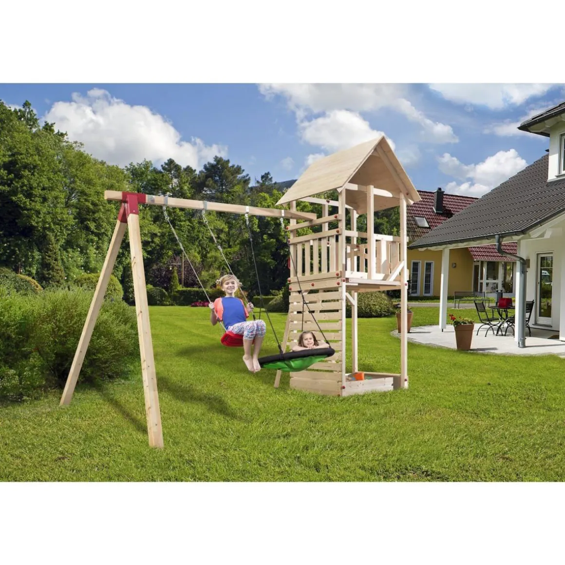 Weka Drachenturm Tabaluga mit Satteldach Sparset inkl Schaukel und Sandkasten