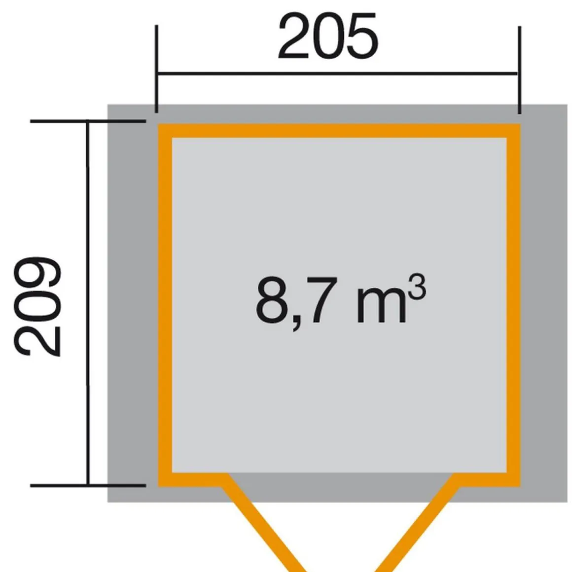 - Außentiefe inkl. Dachüberstand: 233 cm