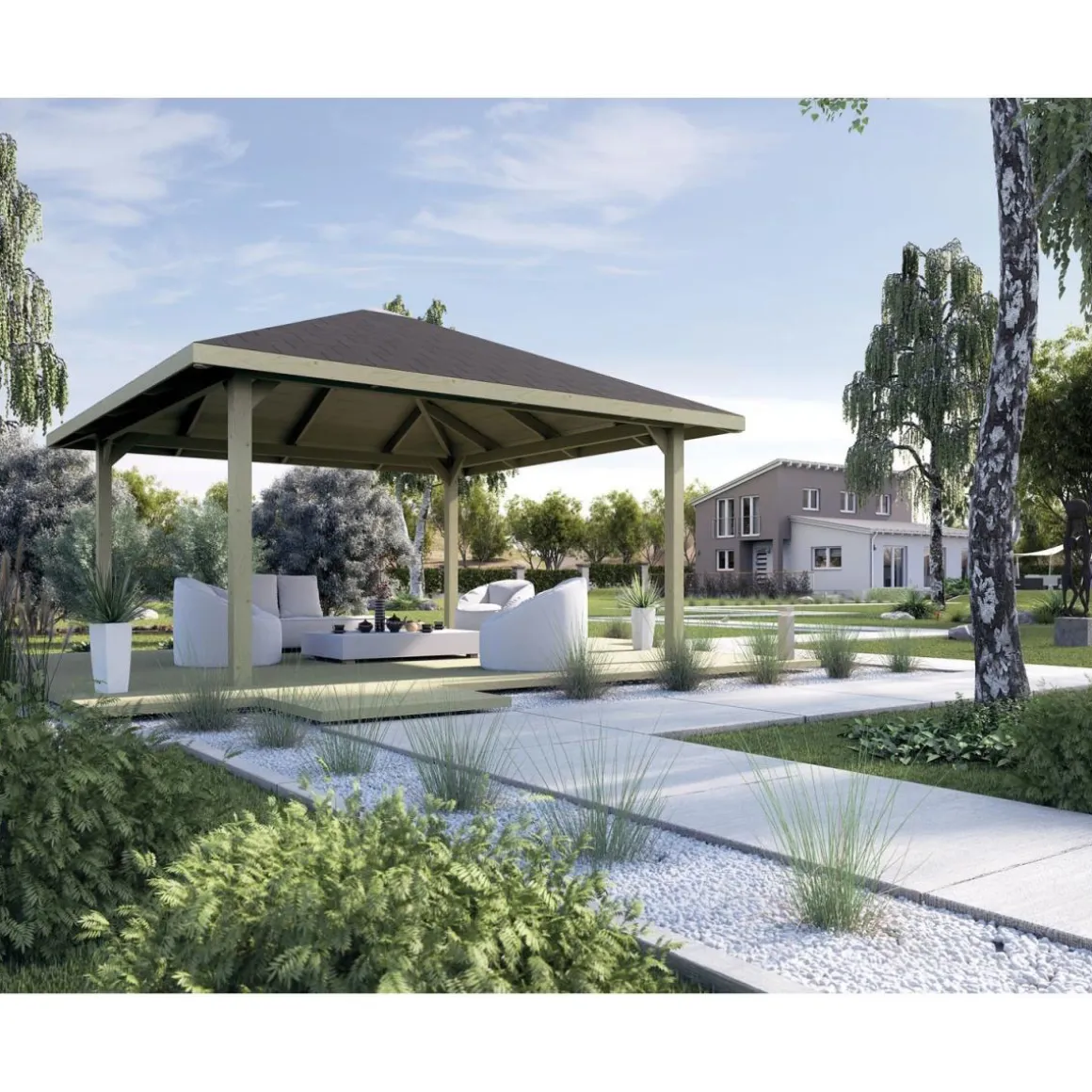 - Holzpavillon mit kesseldruckimprägniertem Holz und massivem Walmdach