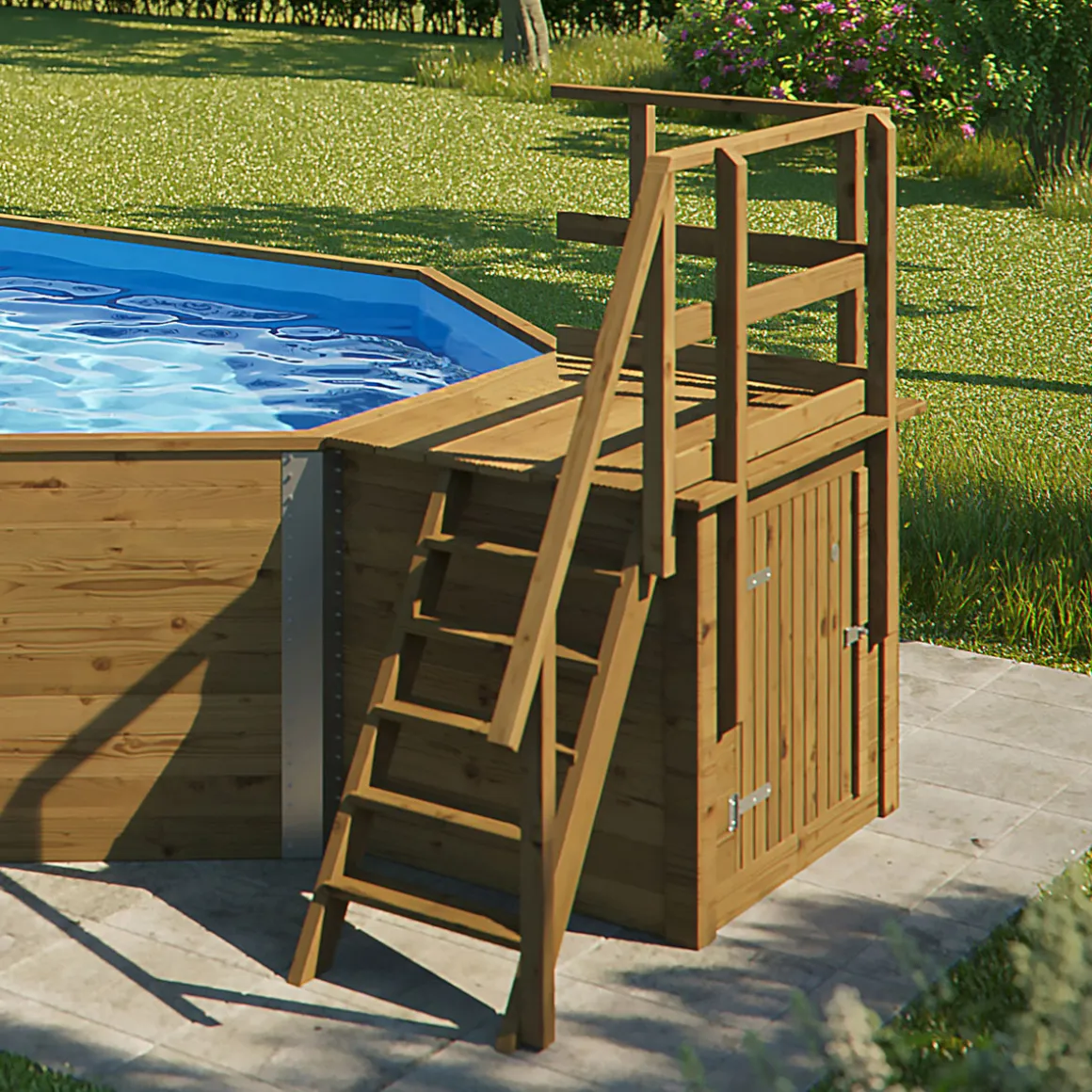 Weka Holzpool-Set 593 B inklusive Edelstahlleiter Vlies Innenfolie Sand-Filteranlage