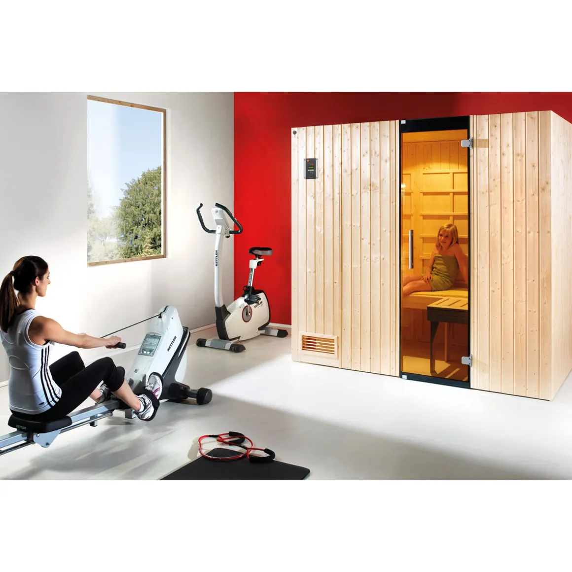 - Leistungsstarker 3,6 kW Bio-Saunaofen kombiniert mit sieben Therm-Flächenstrahlern für vielseitige Nutzungsmöglichkeiten