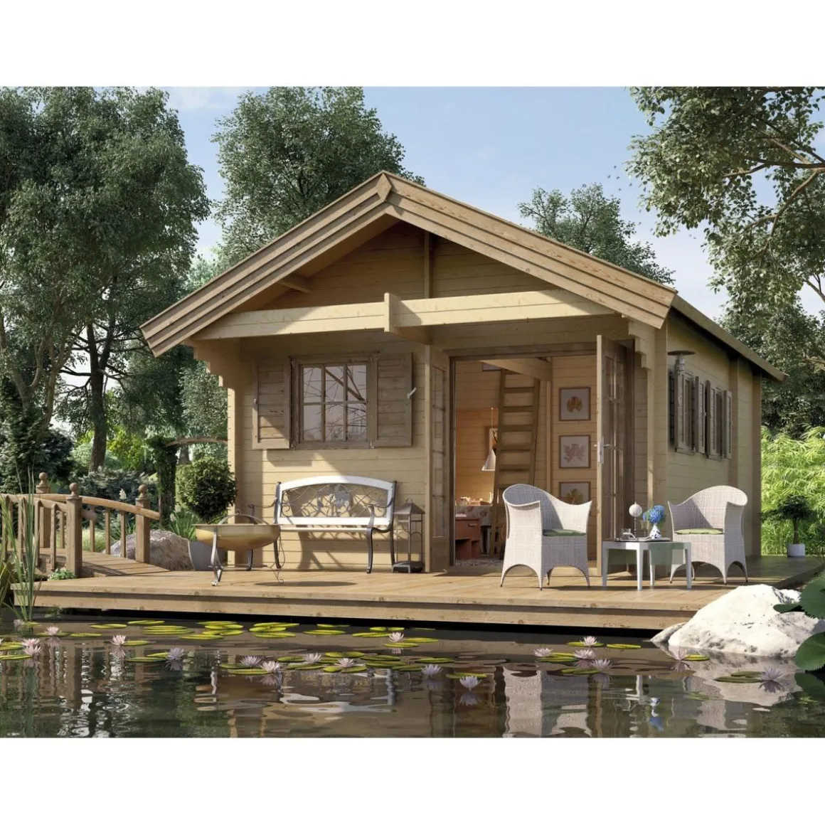 Das Weka Weekendhaus 155 ist ein Blockbohlenhaus aus europäischer Fichte, das sich ideal als Wochenenddomizil eignet. Mit einer Grundfläche von 24,08 m² bietet es genügend Platz für eine kleine Familie oder Freunde. Die Panorama Doppeltür und die großen Fenster sorgen für viel Tageslicht und einen herrlichen Ausblick auf die Natur.