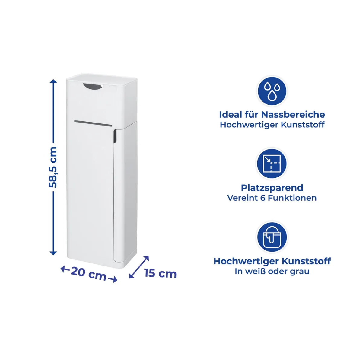 Mit der Wenko Garnitur erhält man nicht nur eine praktische Kombination aus Toilettenpapier-, Ersatzrollen- und Bürstenhalter sowie zusätzlichem Stauraum. Auch das moderne Design fügt sich nahtlos ins Badambiente ein. Die leichte Reinigung des Kunststoffmaterials rundet das Gesamtpaket ab. Eine klare Kaufempfehlung!