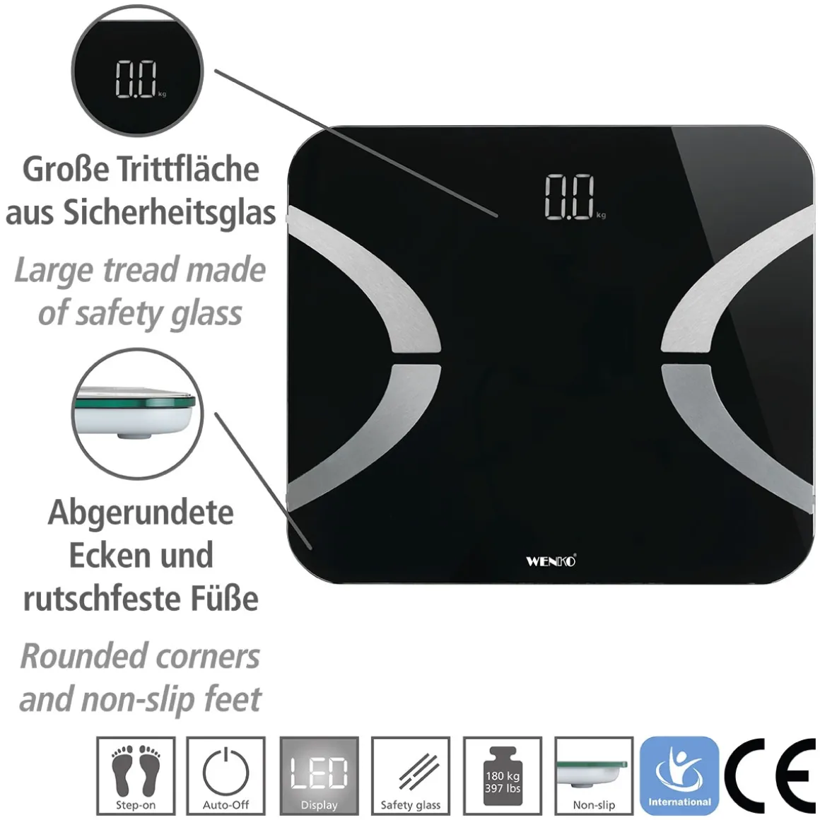 Wenko Analysewaage LED mit Bluetooth Schwarz Körperfettwaage