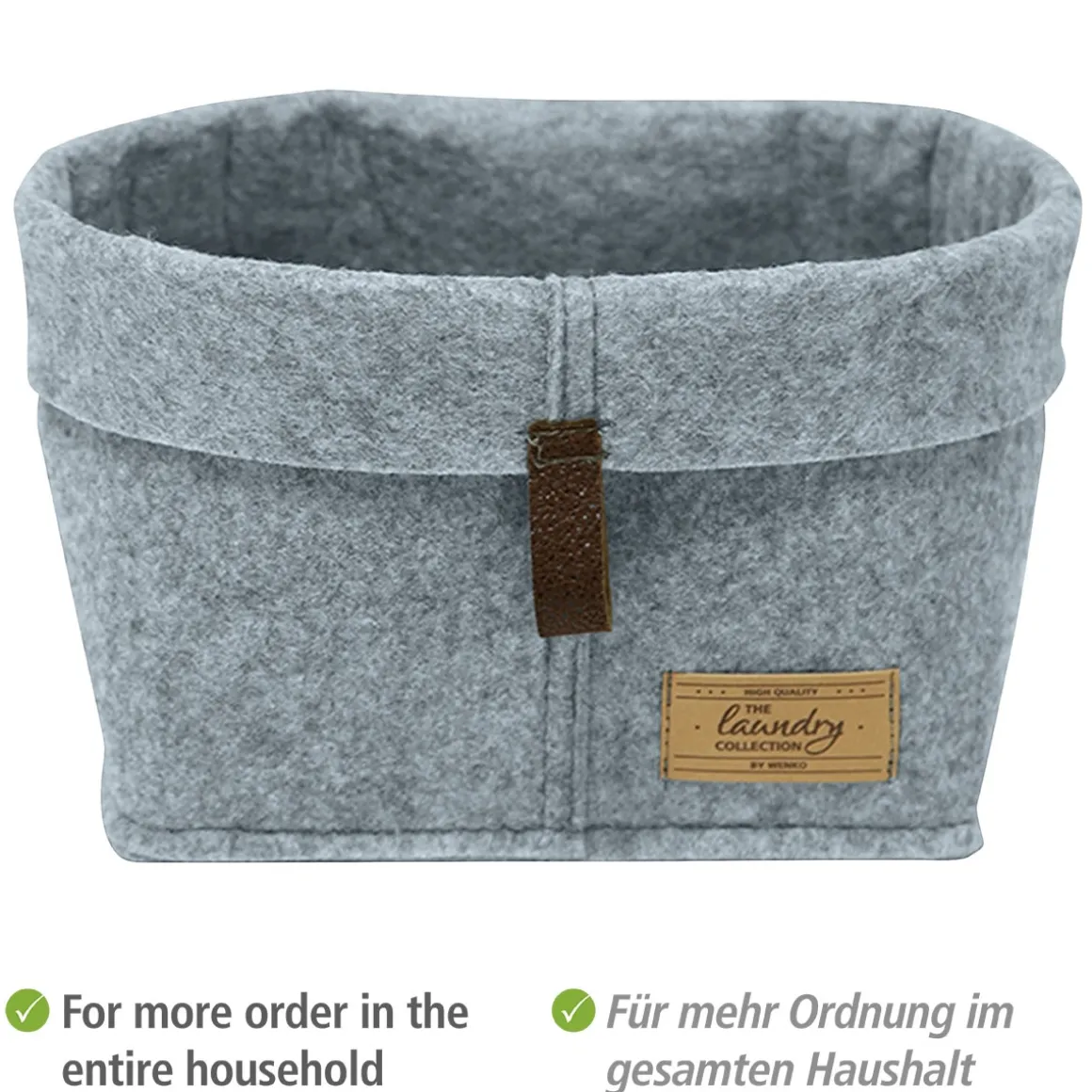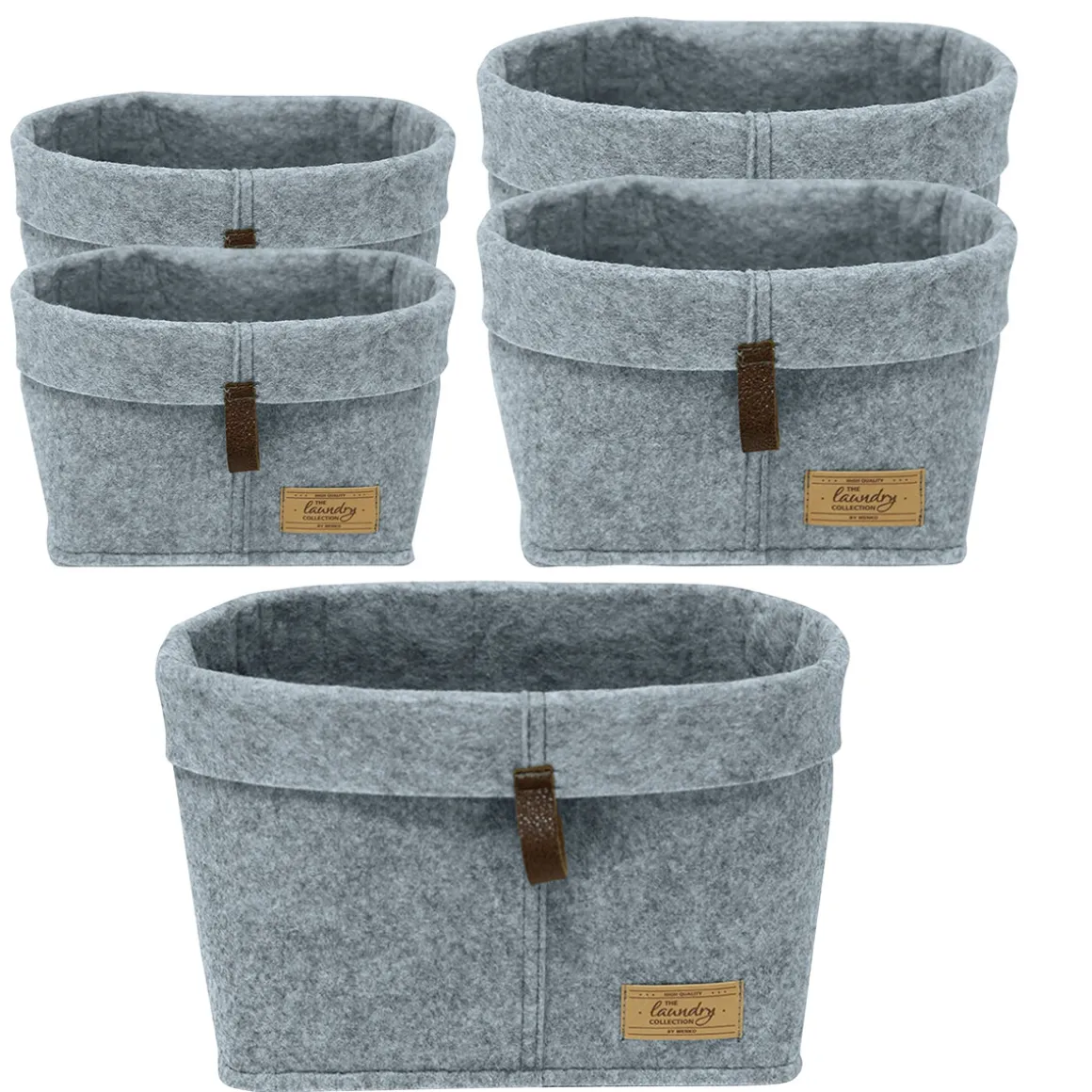 Mit dem Wenko Filz-Korb Feli 5er Set schaffen Sie im Handumdrehen Ordnung in Ihrem Badezimmer oder anderen Räumen. Die Körbe sind aus hochwertigem Filz und Kunstleder gefertigt und überzeugen durch ihre moderne Optik.