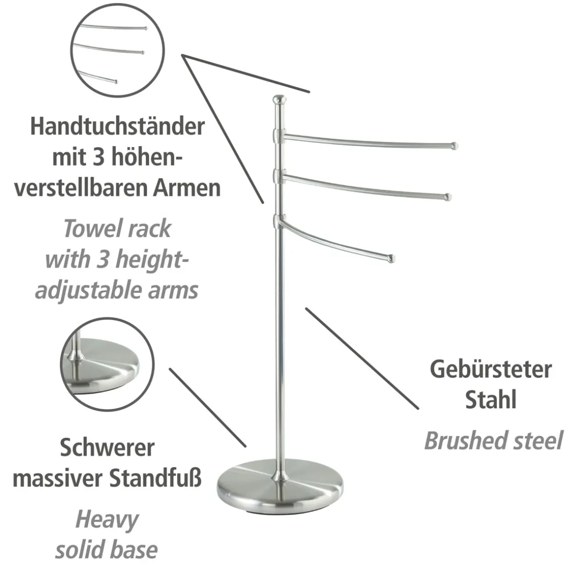 Der Wenko Handtuchständer Adiamo ist die perfekte Wahl, wenn Sie eine platzsparende und dennoch stilvolle Lösung für Ihr Badezimmer suchen. Mit seinen höhenverstellbaren Armen und der universellen Einsetzbarkeit eignet er sich ideal für jeden Haushalt.