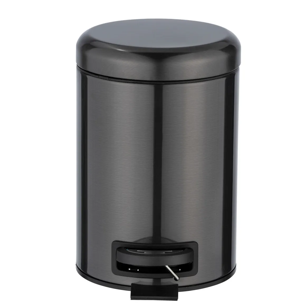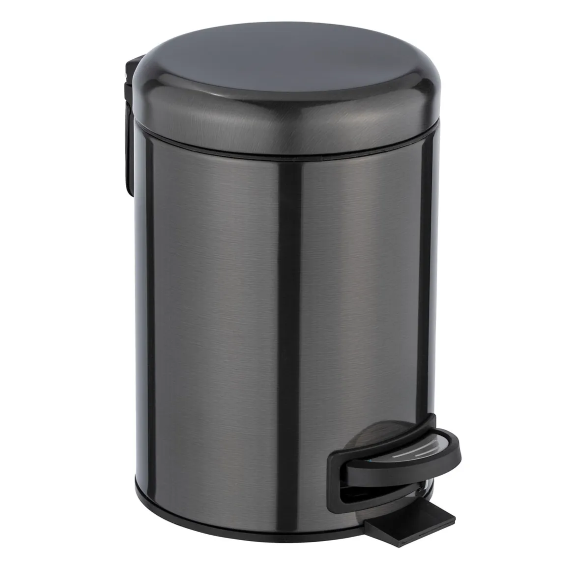 Wenko Kosmetik Treteimer Leman Metallic-Schwarz 3 L Edelstahl