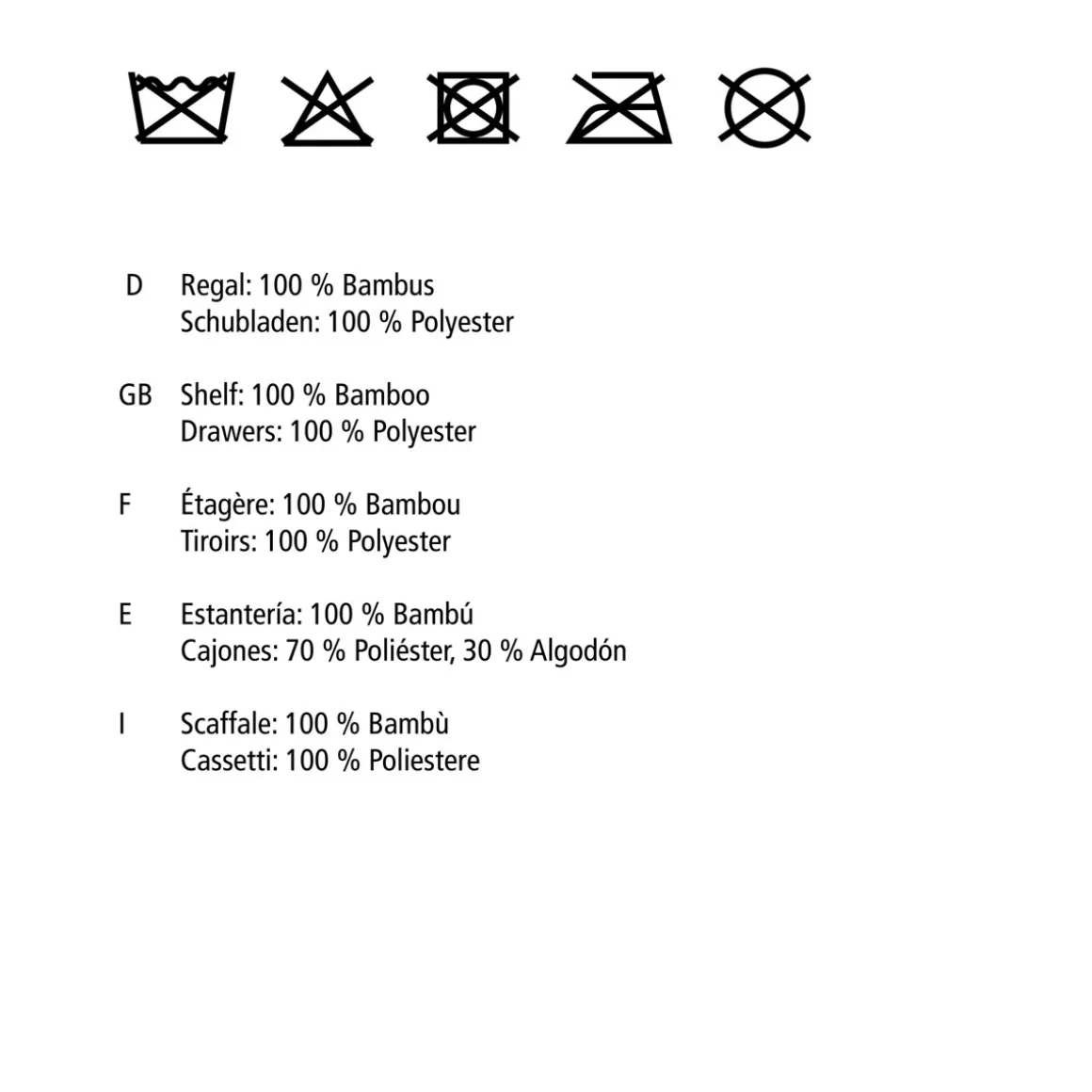 - – Material: Regal: 100 % Bambus / Schubladen: 100 % Polyester