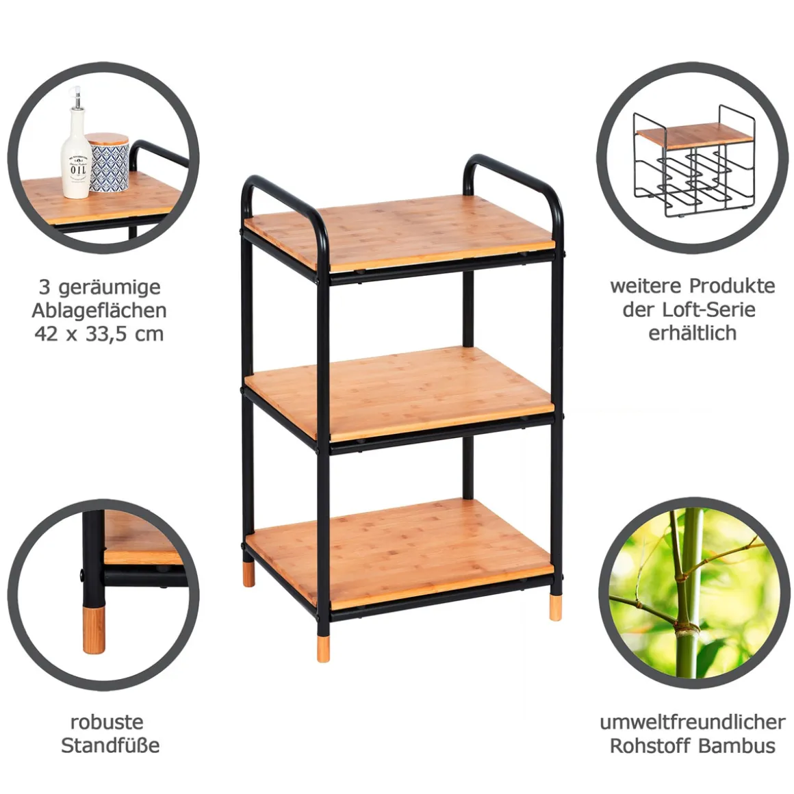 Produktdetails des Wenko Regals Loft aus Bambus mit 3 Etagen
