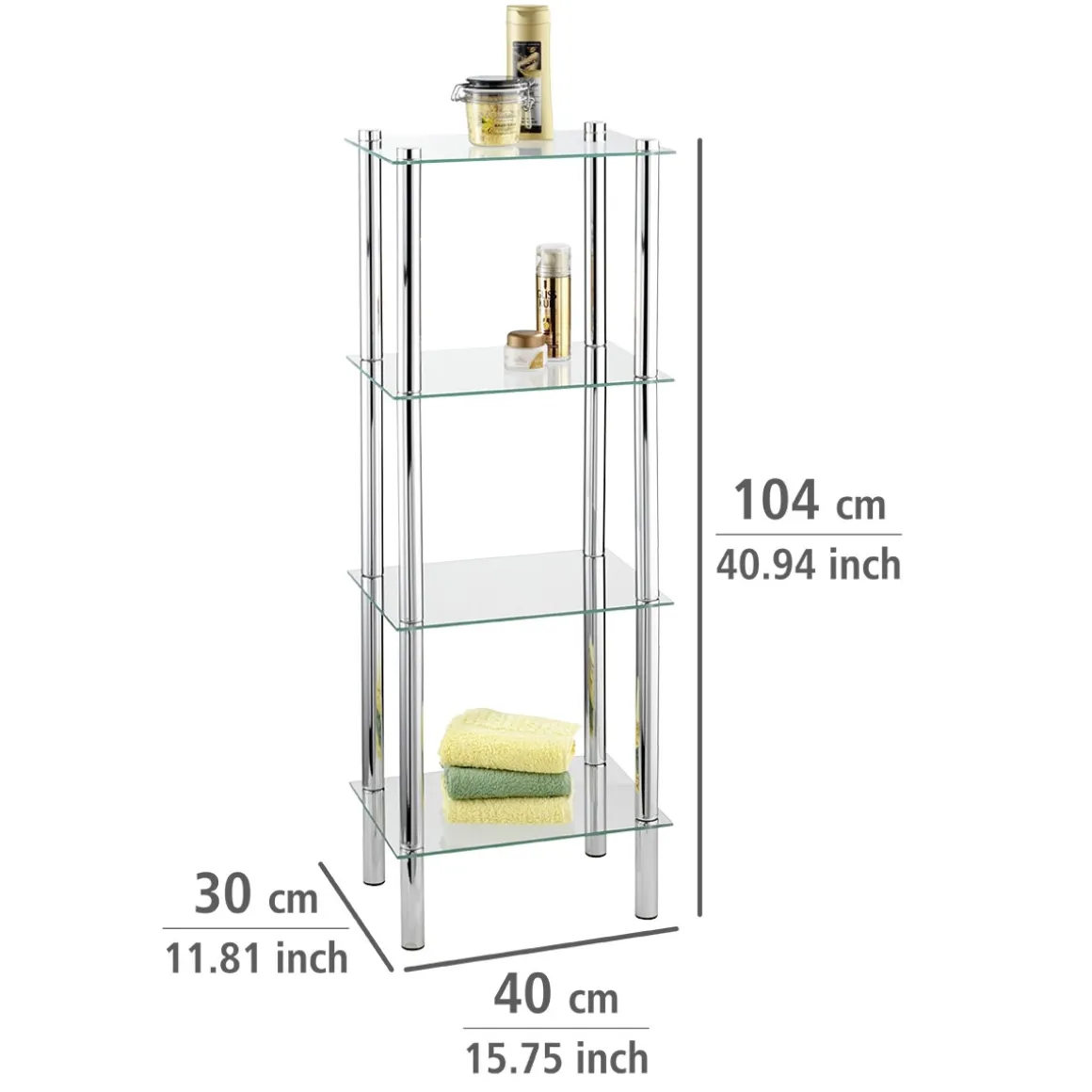 Das Wenko Regal Yago ist ein modernes Standregal aus Edelstahl rostfrei und gehärtetem Glas. Mit seinen vier Ablagen bietet es viel Platz für Ihre Badutensilien.