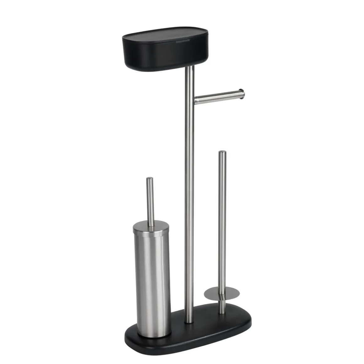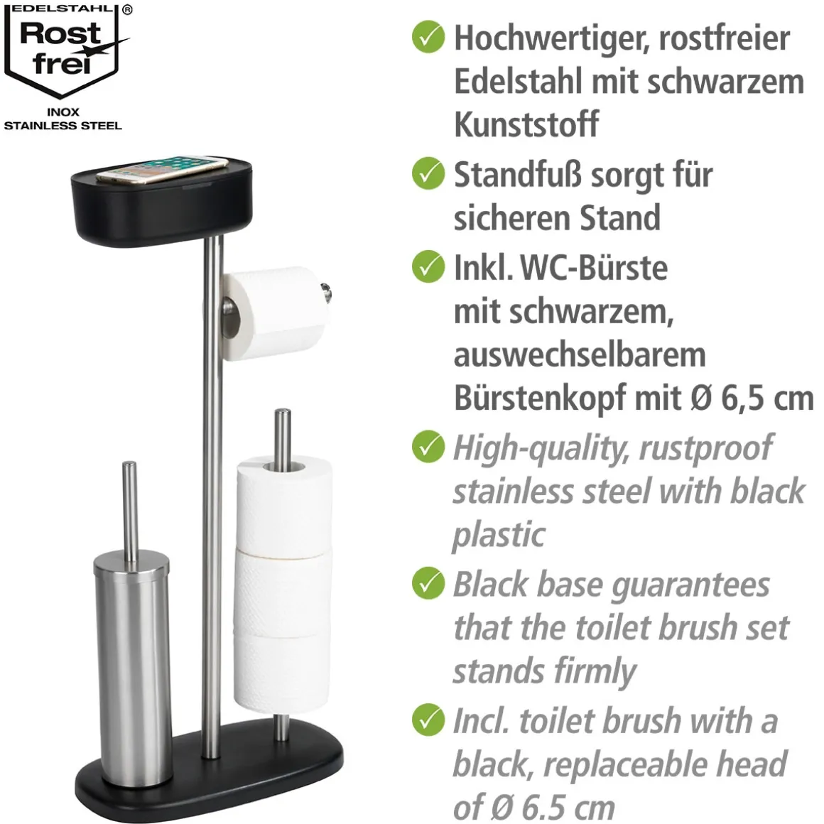 Die Wenko Stand WC-Garnitur mit Box Rivazza Schwarz ist eine elegante und praktische Lösung für Ihr Badezimmer. Mit integriertem Toilettenpapierhalter, Ersatzrollenhalter und WC-Bürstenhalter mit Ablagebox bietet sie alles, was Sie benötigen, um Ihre Toilette sauber und ordentlich zu halten.