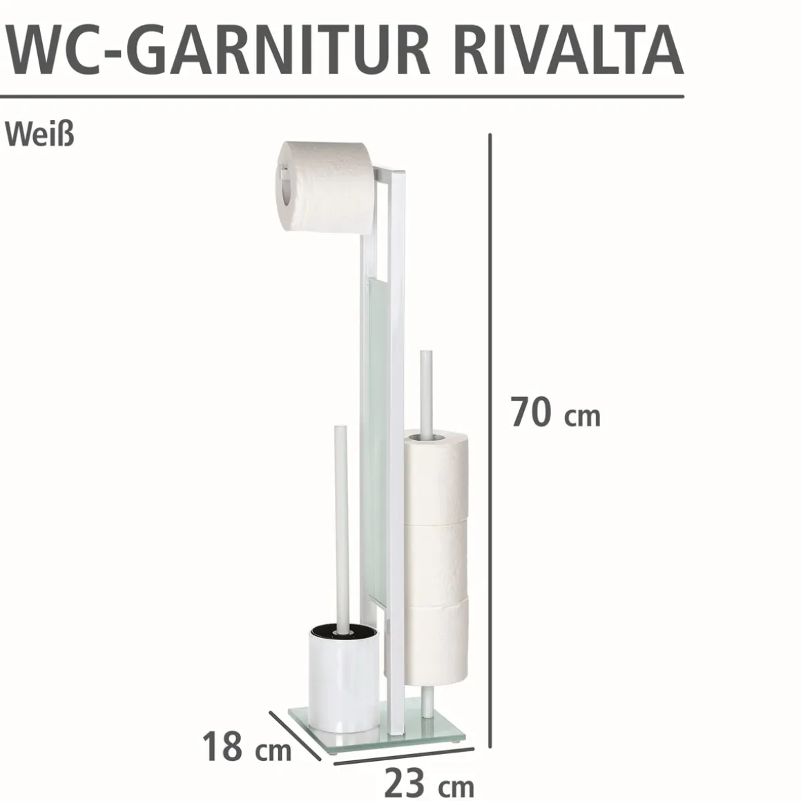 Die Wenko Stand WC-Garnitur Rivalta Weiß ist nicht nur optisch ansprechend, sondern auch äußerst praktisch. Dank des integrierten Toilettenpapierhalters und des auswechselbaren Bürstenkopfs der beiliegenden WC-Bürste wird das Reinigen des Badezimmers zum Kinderspiel. Die hochwertige Verarbeitung aus Edelstahl und gehärtetem Glas sorgt zudem für Langlebigkeit. Eine klare Kaufempfehlung!