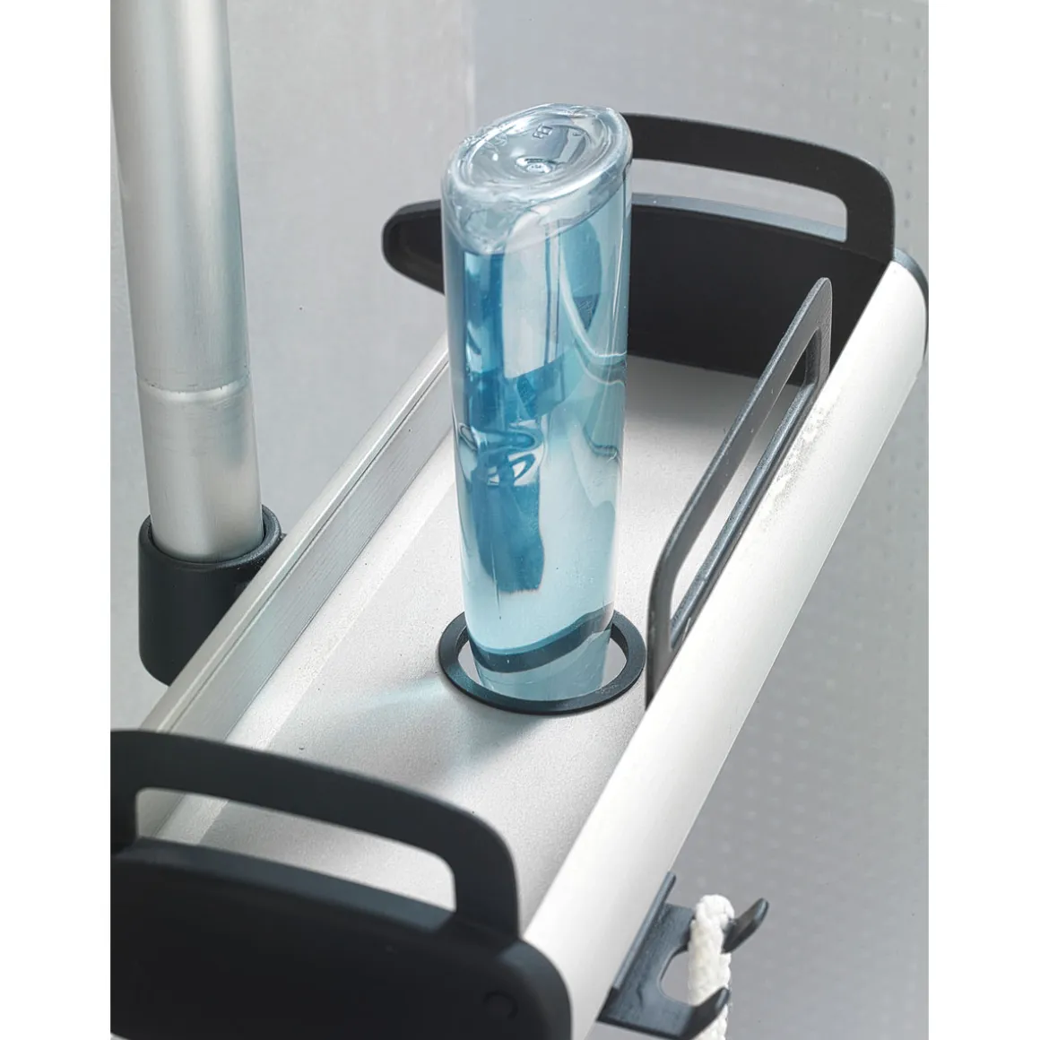 - – Lieferumfang: Teleskopstange, 3 Ablagen inkl. Haken, Antibeschlag-Spiegel