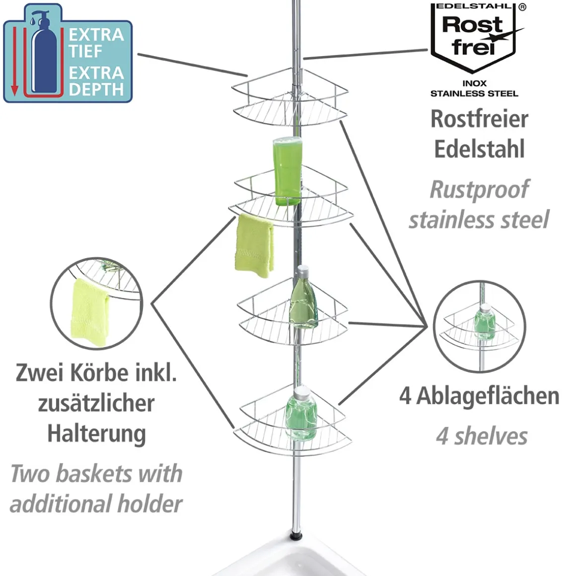 Wenko Teleskop-Eckregal Dolcedo Edelstahl rostfrei – Platzsparendes Badregal für die Dusche