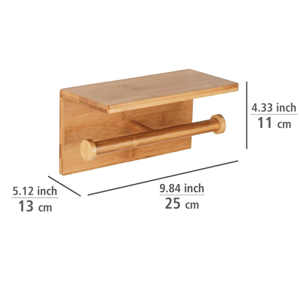 Der Wenko Toilettenpapierhalter Duo Bambusa eignet sich perfekt für alle, die ihr Bad stilvoll und praktisch einrichten möchten. Durch seine Ablagefläche bietet er zusätzlichen Platz für Handy oder Feuchttücher.