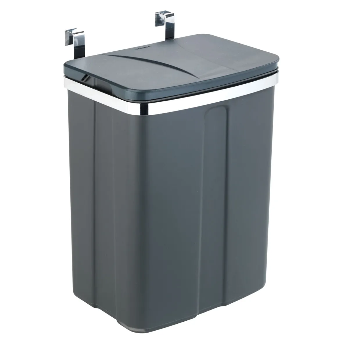 Wer kennt das nicht? In der kleinen Küche stapelt sich schnell der Müll und man hat keine Lust auf einen großen Mülleimer herumzutreten. Der Wenko Tür-Abfalleimer schafft hier Abhilfe! Mit seinem universellen Einhängesystem kann er an jeder Schranktür oder Wand befestigt werden und nimmt so keinen wertvollen Bodenplatz weg. Das Fassungsvermögen von 12 Litern reicht vollkommen aus und durch den Kunststoffeinsatz lässt sich der Eimer leicht entleeren. Die graue Farbe passt zudem perfekt zu jedem modernen Küchendesign.