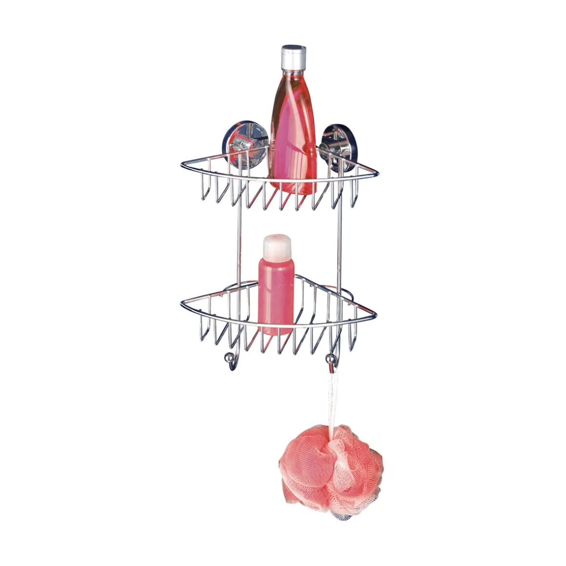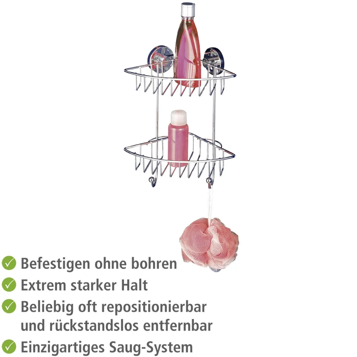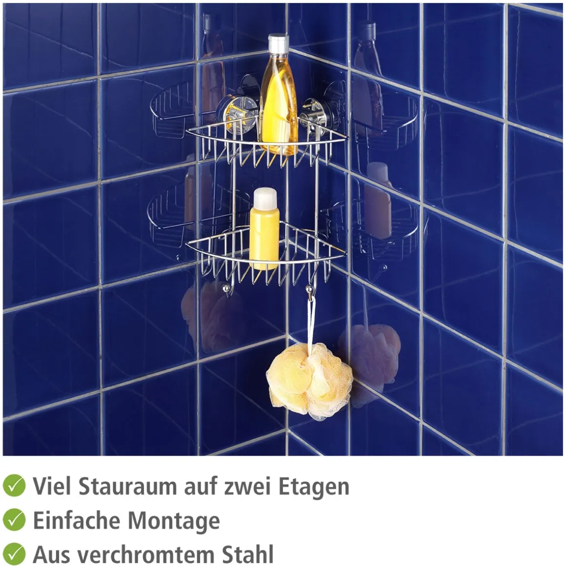 Wenko Vacuum-Loc Eckregal Bari 2 Etagen – Platzsparendes und belastbares Bad-Accessoire