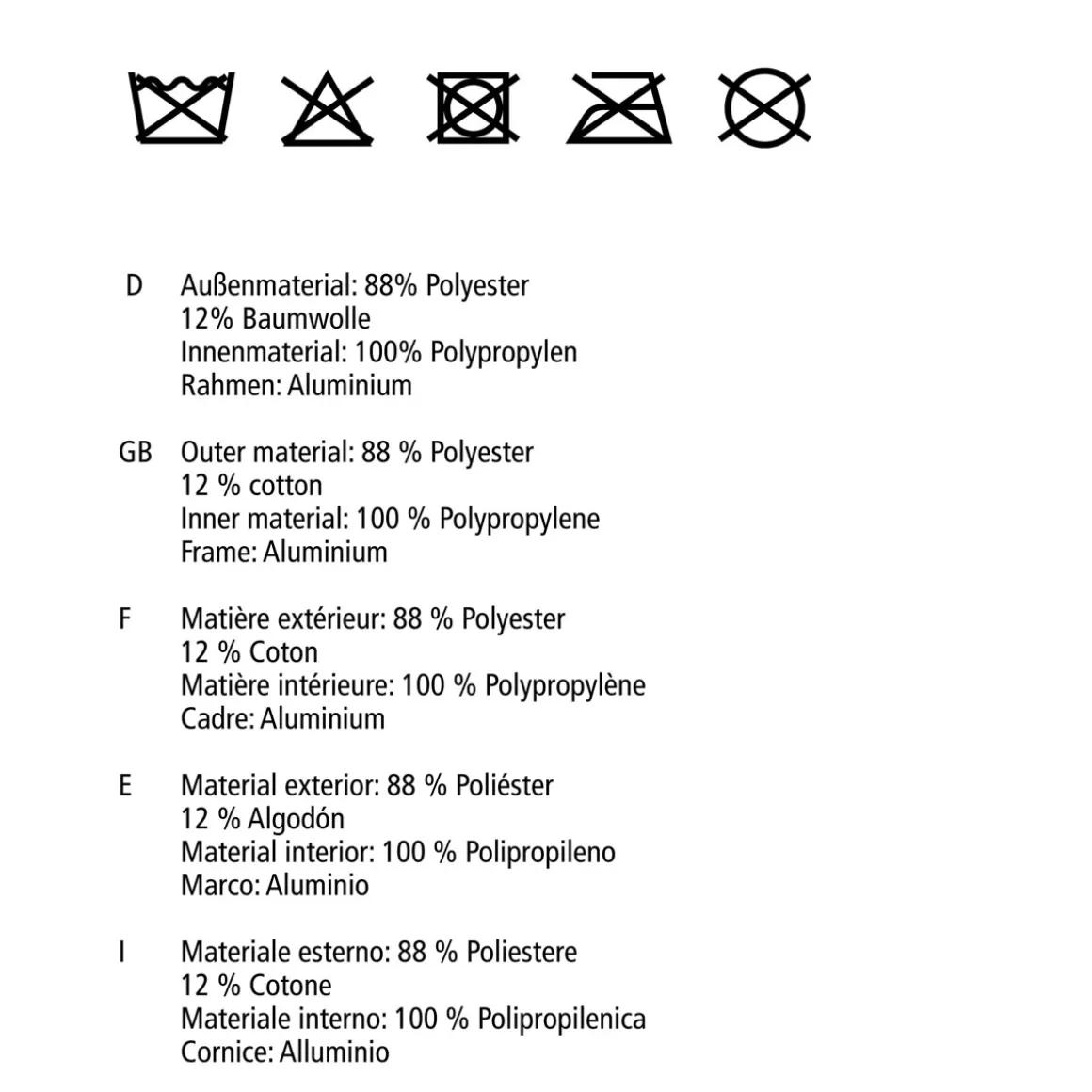 - Außenmaterial aus 85% Polyester/15% Polyamid, Innenmaterial aus Polypropylen