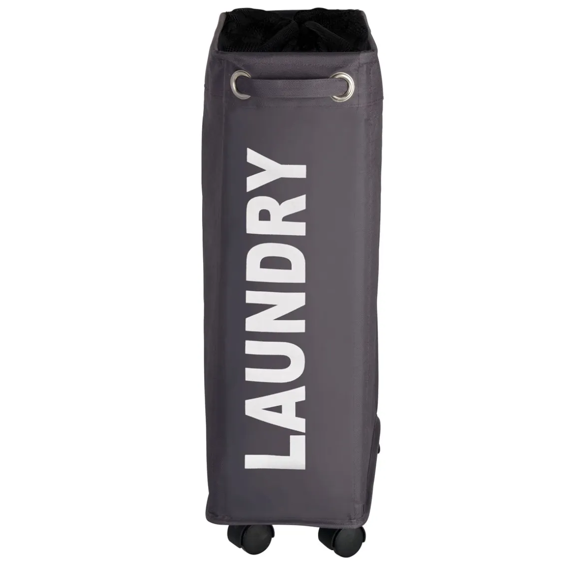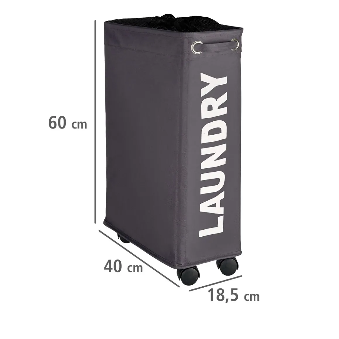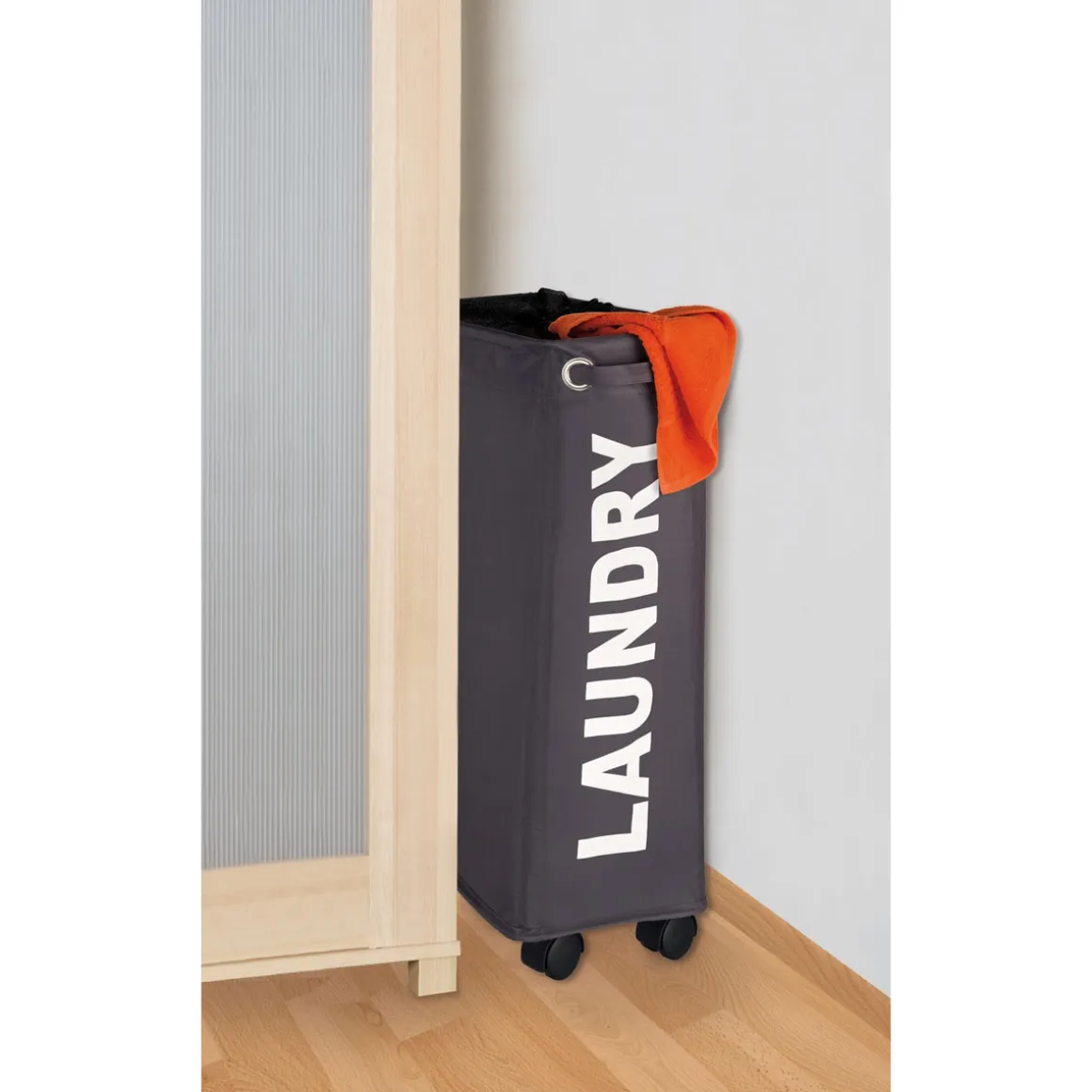 Der Wenko Wäschesammler Corno in Grau ist der perfekte Helfer für Ihre schmutzige Kleidung. Mit einem Fassungsvermögen von 43 Litern bietet er ausreichend Platz und lässt sich dank seiner praktischen Tragegriffe und Rollen mühelos transportieren.