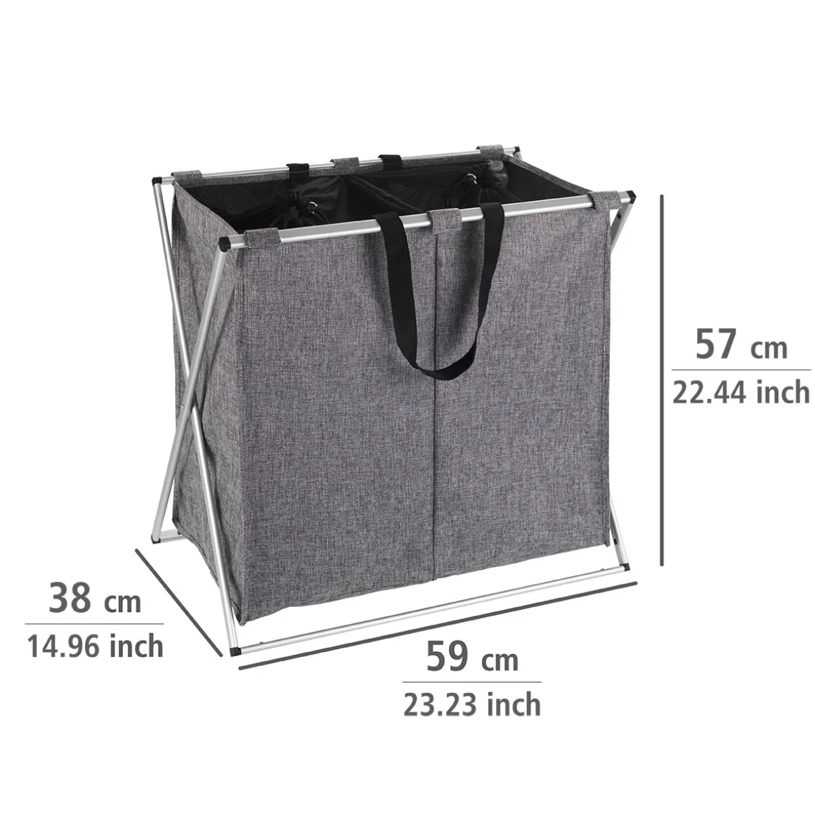 Mit dem Wenko Wäschesammler Duo in Grau wird das Sammeln von Schmutzwäsche zum Kinderspiel. Mit einem Fassungsvermögen von 120 Litern bietet er ausreichend Platz für die gesamte Familie und ist dabei platzsparend und formschön.