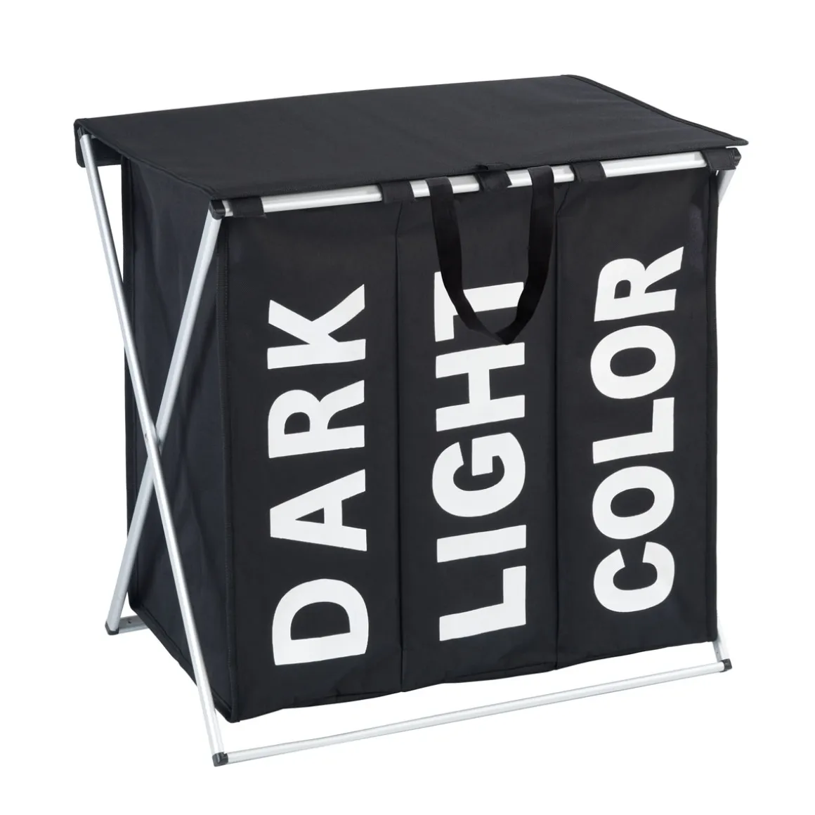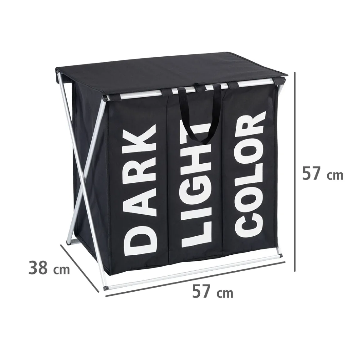 Wenko Wäschesammler Trio schwarz 118 l – Platzsparend und stylisch