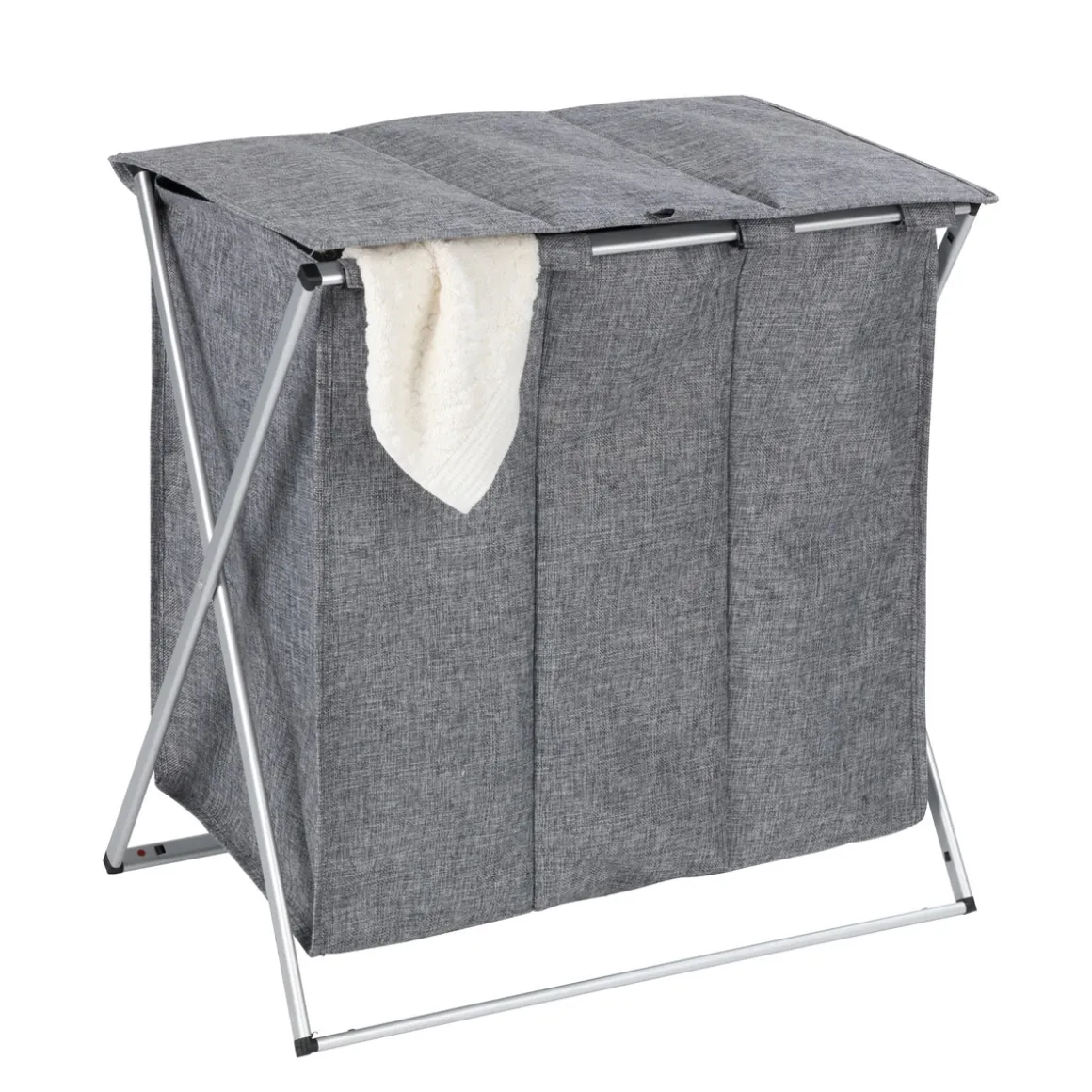 Der Wenko Wäschesammler Trio Top Grau meliert überzeugt durch seine hohe Qualität und sein großes Fassungsvermögen. Dank seiner stabilen Konstruktion aus Aluminiumrahmen und strapazierfähigem Polyesterstoff ist er ein langlebiger Begleiter im Alltag. Bestellen Sie jetzt den praktischen Helfer für Ihre Waschroutine!