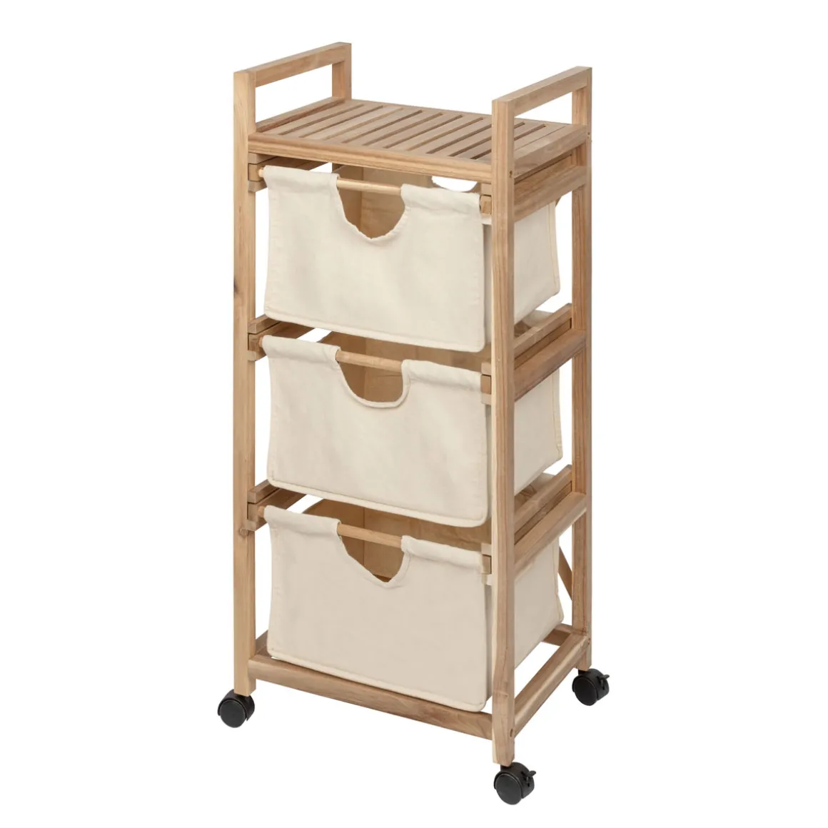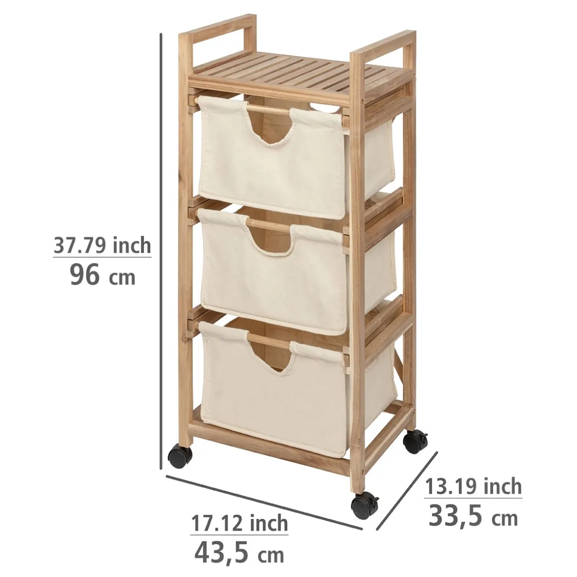 Mit dem Wenko Wäschewagen Acina wird das Sortieren und Transportieren von Schmutzwäsche zum Kinderspiel. Dank der drei geräumigen Schubladen aus Holz und den Rollen lässt sich der Wagen flexibel im Haushalt einsetzen.