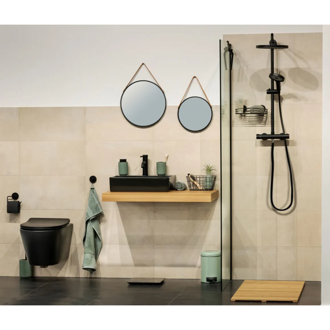 Wenko Wandspiegel Borrone rund 30 cm schwarz mit Aufhänge-Gurt