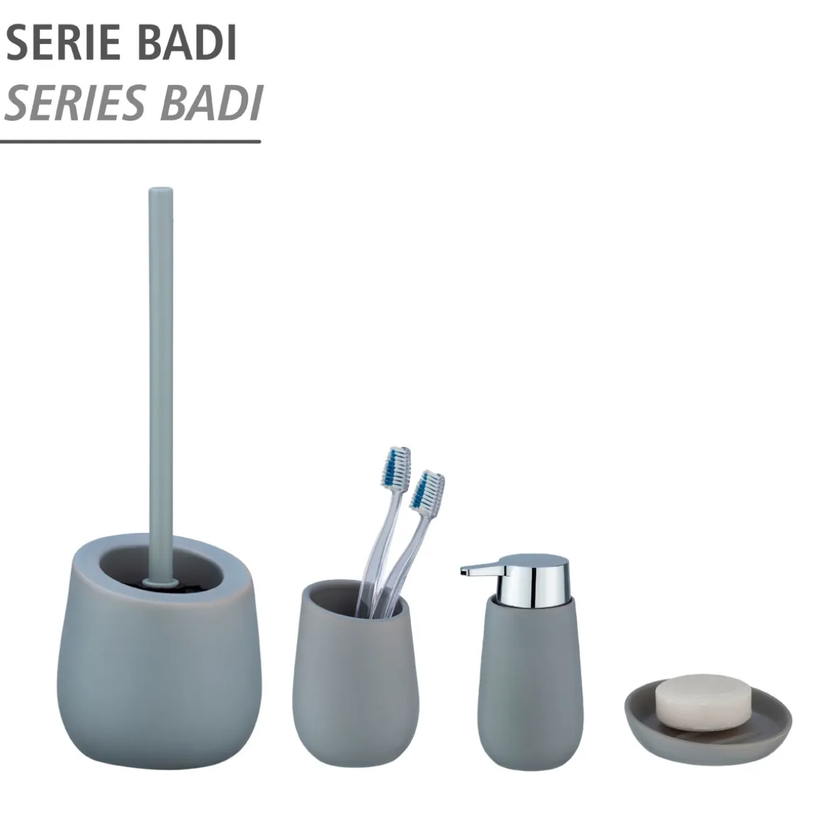Wenko WC-Garnitur Badi Grau Keramik WC-Bürstenhalter