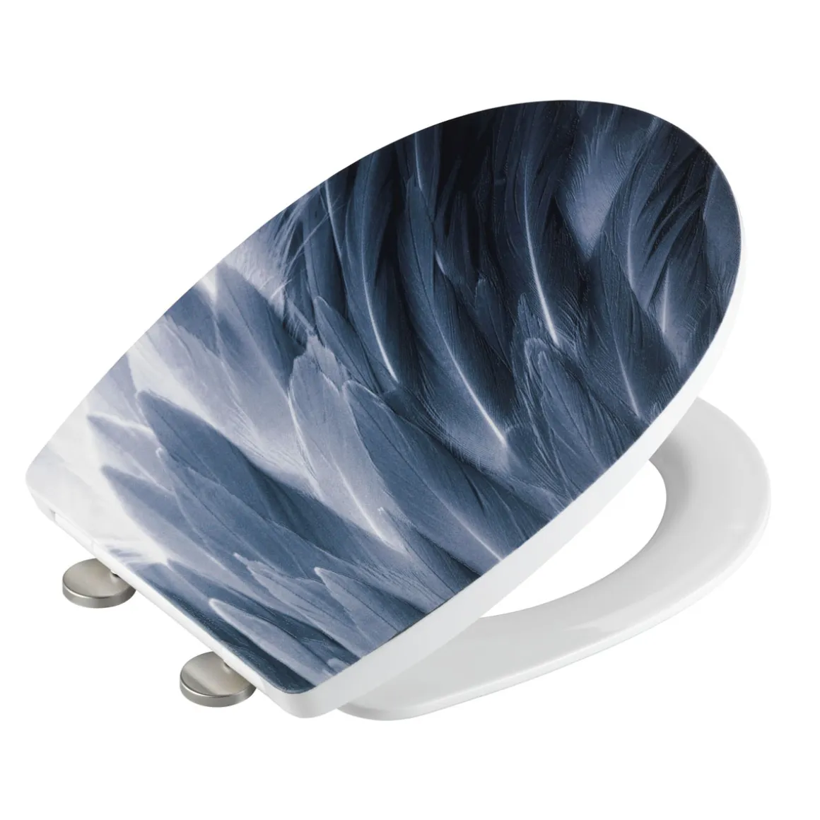 Mit dem Wenko WC-Sitz Plumes holen Sie sich einen echten Blickfang ins Badezimmer. Die Relief-Oberfläche in abstraktem Muster verleiht Ihrem Toilettenbereich das gewisse Extra. Dank Absenkautomatik und Schnellbefestigung aus bruchstabilem Thermoplast ist dieser Toilettensitz nicht nur schön anzusehen, sondern auch äußerst praktisch im Gebrauch. Überzeugen Sie sich selbst von diesem hochwertigen Produkt!