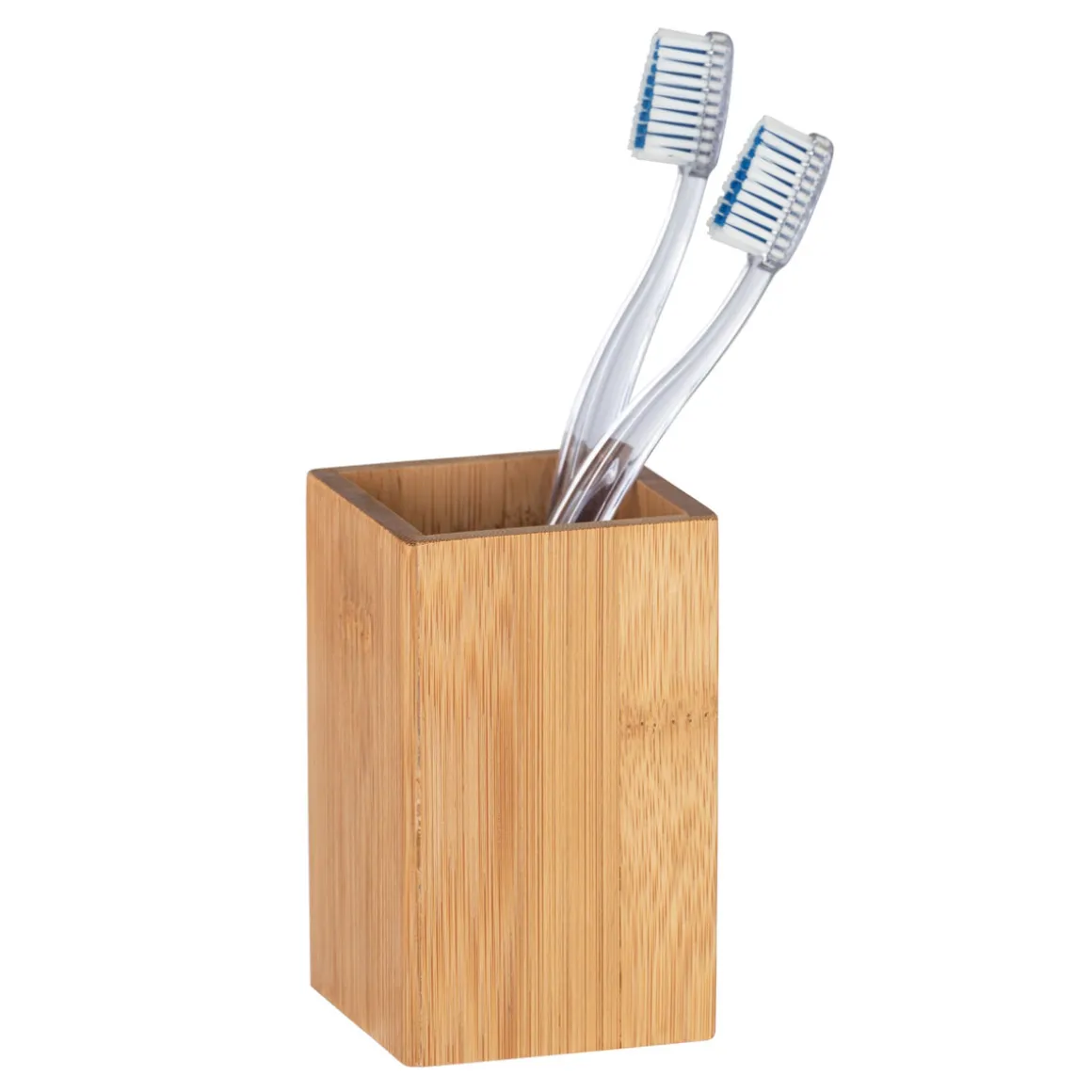 Der Wenko Zahnputzbecher Padua ist aus umweltfreundlichem Bambus gefertigt und überzeugt durch seine eckige Form. Mit einem Gewicht von nur 130 g ist er leicht zu handhaben und passt perfekt in jedes Badezimmer.