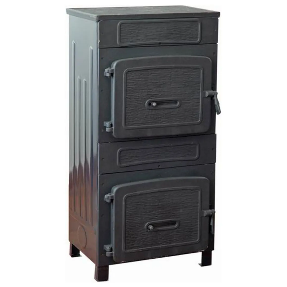 Die spezielle Verkleidung mit Emaille (emailliert anthrazit) wirkt urwüchsig und wohnlich. Das Modell weist eine Wärmeleistung von 8 kW auf. Damit ist er für alle Räume passend, die 182 m³ messen oder kleiner sind. An diesem Ofen befindet sich der Anschluss für das Rohr hinten. Mit den Maßen von 44,4×91,9×28,5 cm (BxHxT) ist dieser Ofen so konzipiert, dass er in den meisten Räumen unkompliziert einen Standort finden sollte.