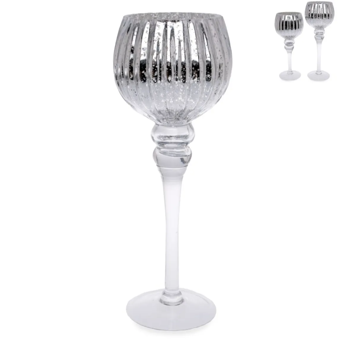 Windlicht auf Fuß 35cm silber Glas