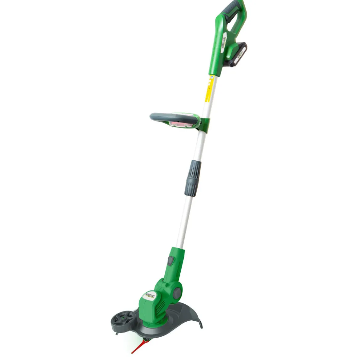 - Lieferumfang: 1x Rasentrimmer, 1x Akku, 1x Ladegerät, 1x Kantenroller, 1x Pflanzenschutzbügel