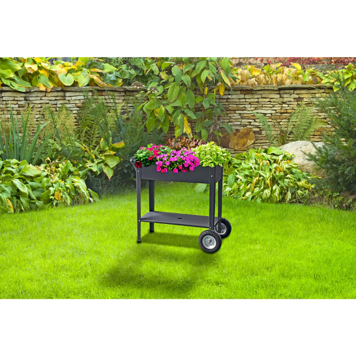Mit dem Wingart Hochbeet mit Rädern können Sie Ihre Pflanzen auf eine neue Ebene bringen. Das pulverbeschichtete Stahlmaterial sorgt für Langlebigkeit und das schicke schwarze Design passt perfekt in jeden Garten.