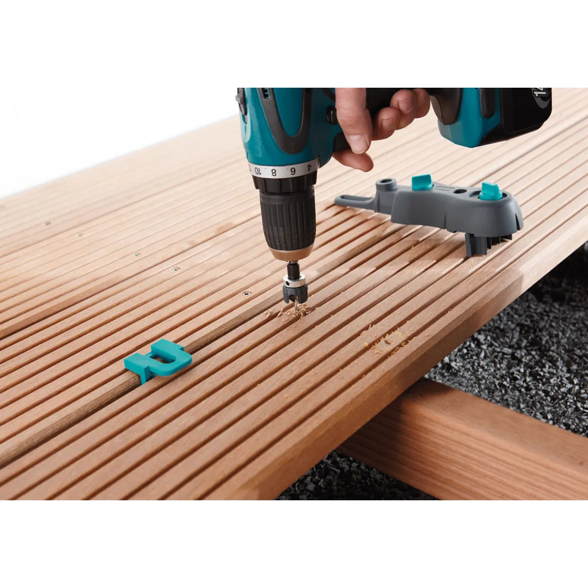 - Inhalt: Montagezwinge, Terrassenbohrmobil, Vorbohrer, Abstandshalter und Spannbacken