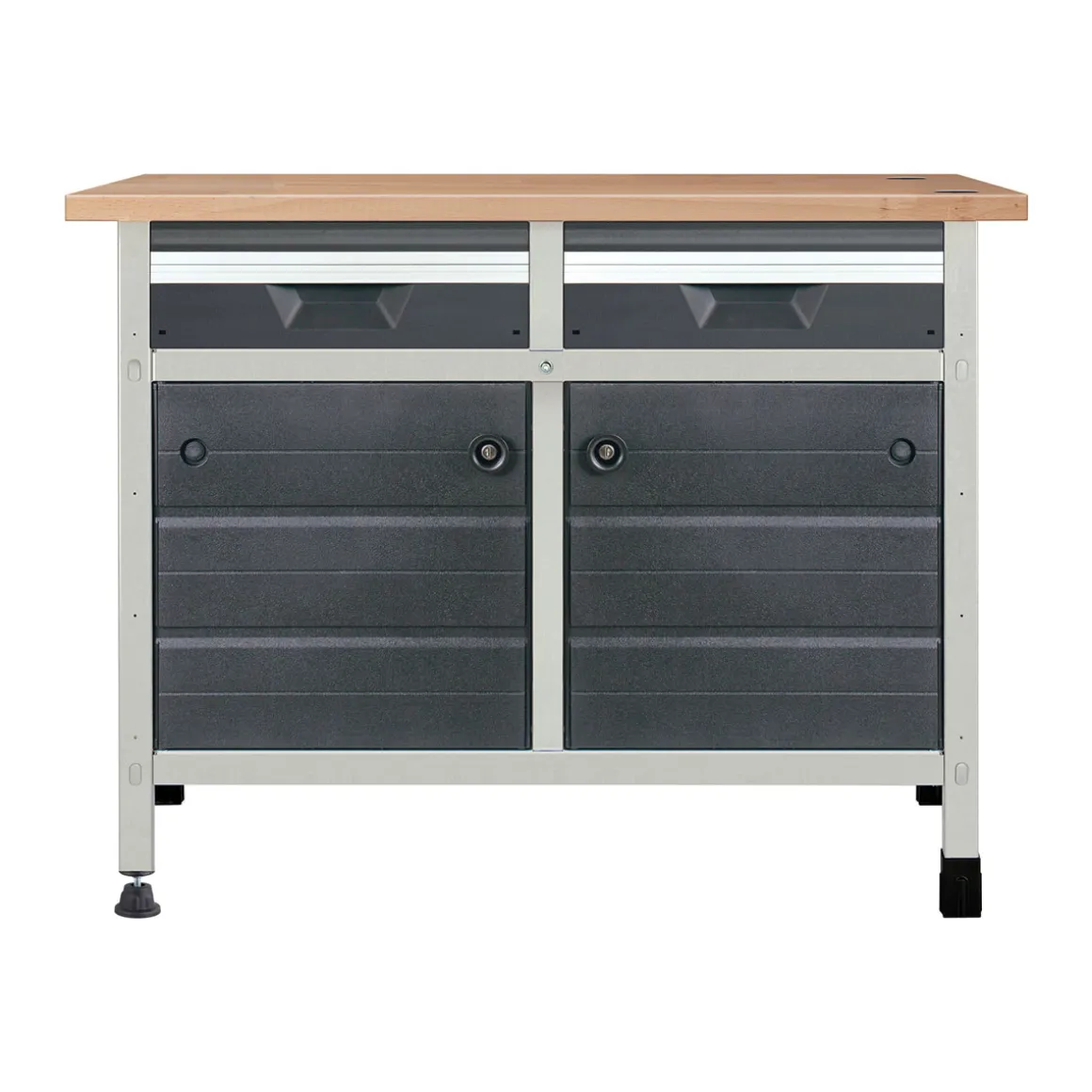 Wenn Sie auf der Suche nach einer stabilen und langlebigen Arbeitsfläche sind, dann ist die Wolfcraft Werkbank WWS620 genau das Richtige für Sie. Mit ihrer massiven Buchen-Arbeitsplatte und dem robusten Stahlblech-Korpus hält sie auch schwereren Belastungen stand. Die beiden Schubladen bieten zusätzlichen Stauraum und sorgen dafür, dass Sie immer alles griffbereit haben. Bestellen Sie jetzt die Wolfcraft Werkbank WWS620 online im Online-Shop!