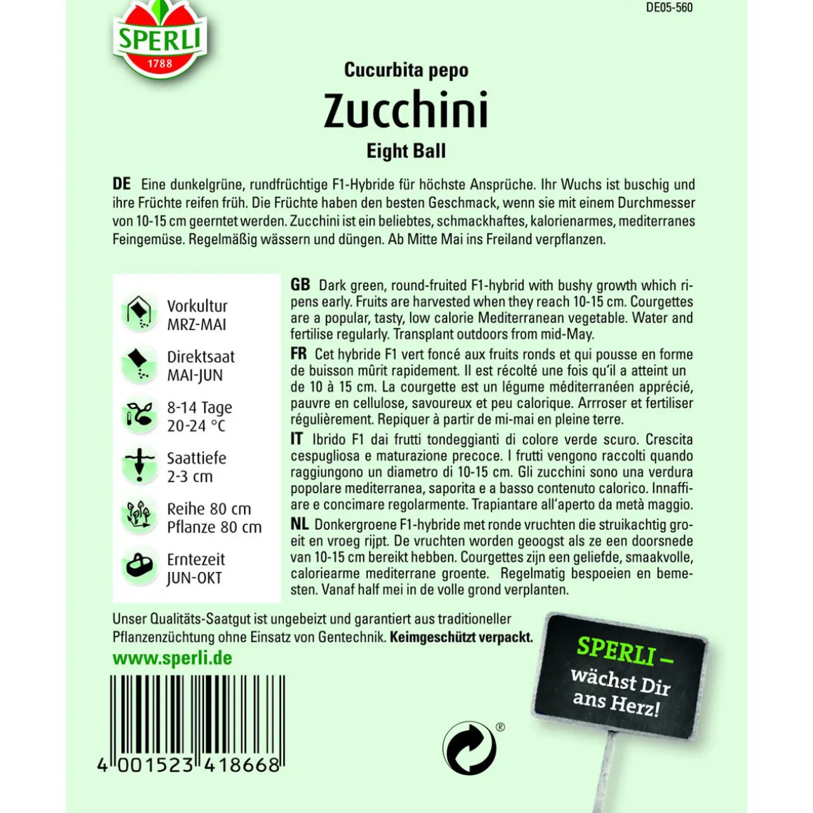 Mit der Zucchini Eight Ball von Sperli GmbH holen Sie sich eine hochwertige Gemüsemischung in Ihren Garten. Die Pflanzen sind einfach anzubauen und bieten einen hohen Ertrag. Entdecken Sie jetzt die Eigenschaften dieser Sorte.